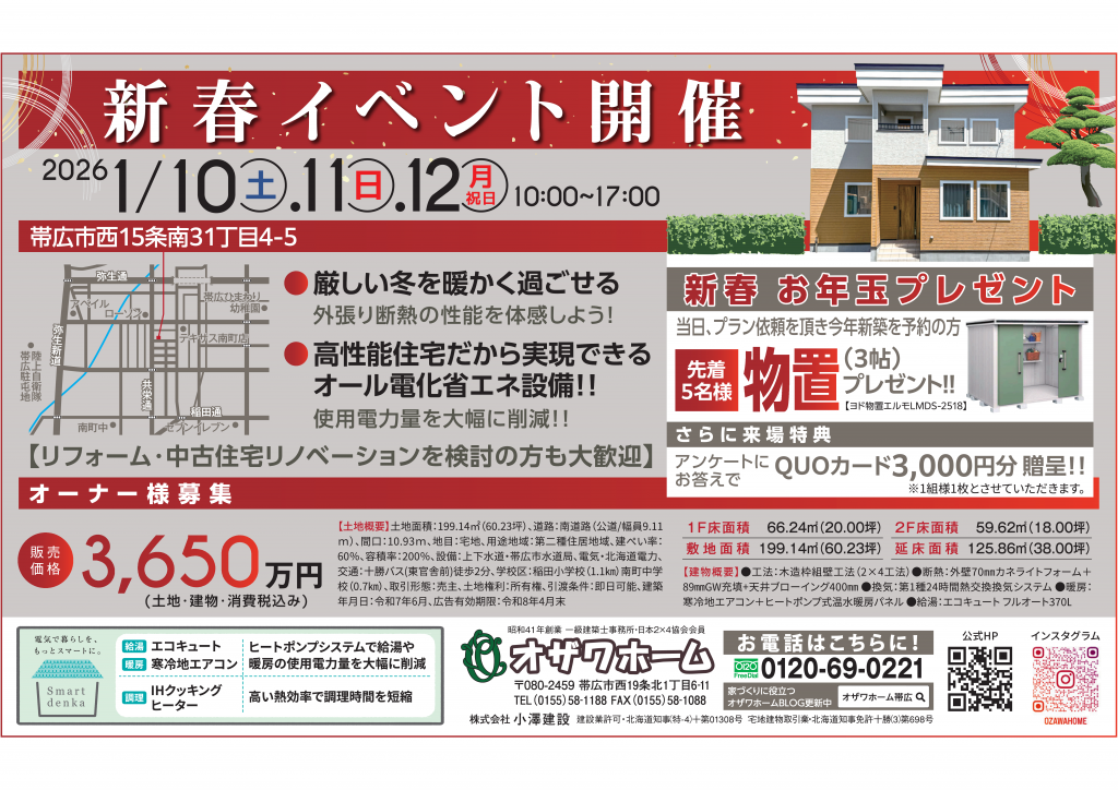 1/10(土)-12(月)に、モデルハウスにて見学会を開催いたします!